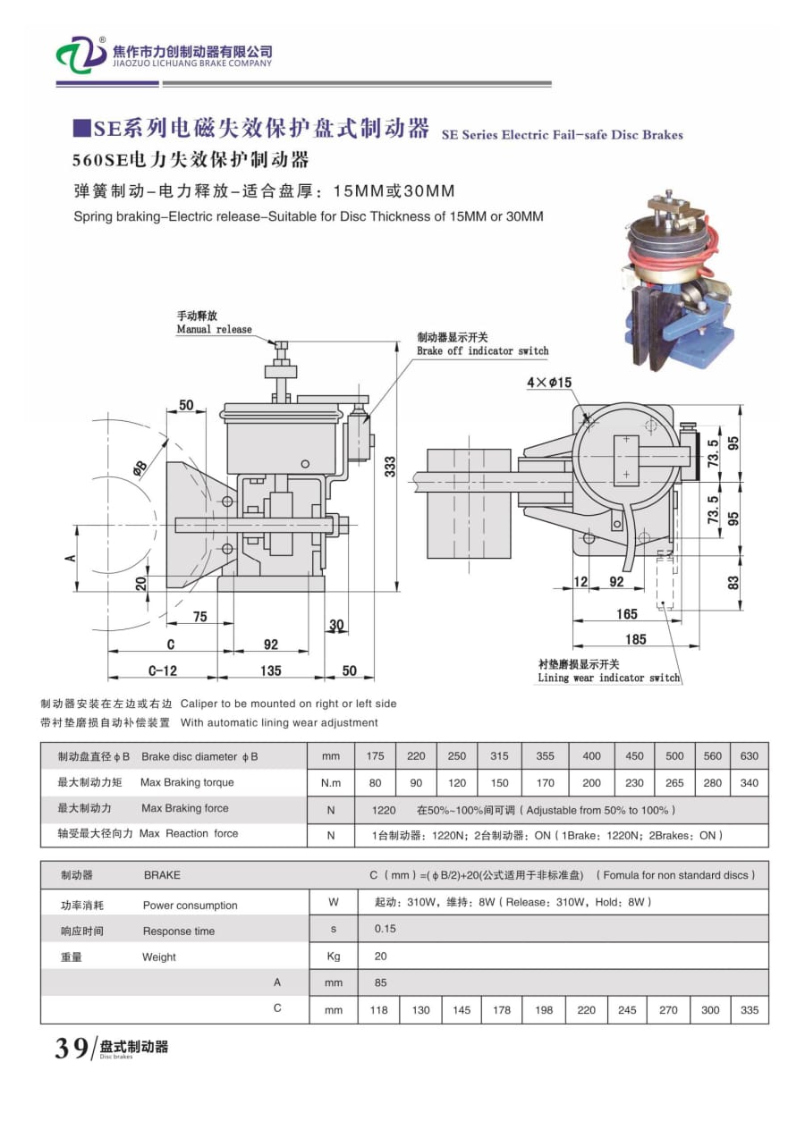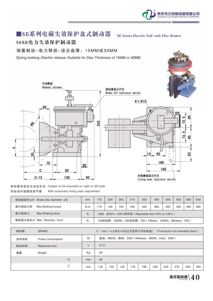 SE系列電磁失效保護(hù)盤式制動器